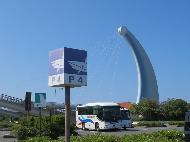 しまね海洋館アクアス。駐車場はサメに!