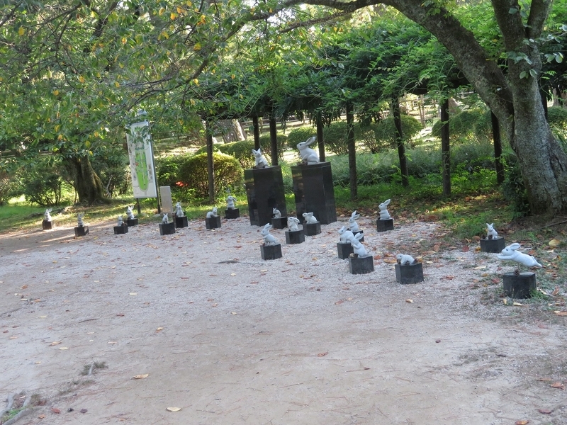 たくさんのウサギ像。